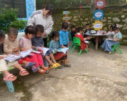 Trường mầm non Sao Mai xã Na Son cho trẻ làm quen với việc đọc sách